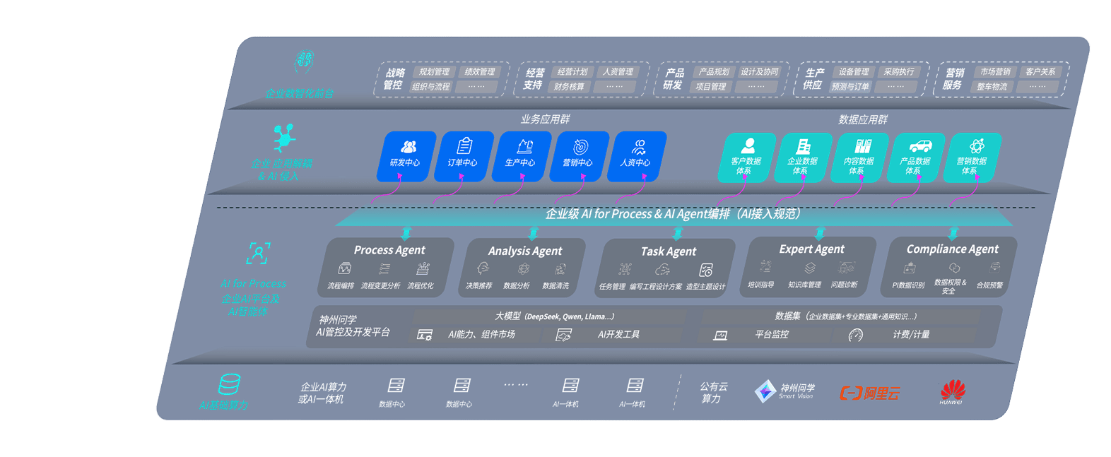 端到端的一站式AI工作空间深度融合了从企业战略规划到日常经营的全流程业务板块,,,,定向解决车企内部领域多、、、部门多、、链条长、、、场景碎片化等难题,,支持车企快速构建以AI为核心的生产力写作体系,,,,实现任务执行与AI能力的无缝集成与交互