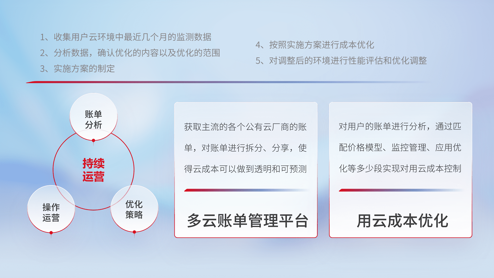 运用智能化工具分析云资源,,,,提供日常费用可视化工具,,,自动账单拆分,,成本优化云上费用,,,降本增效。。